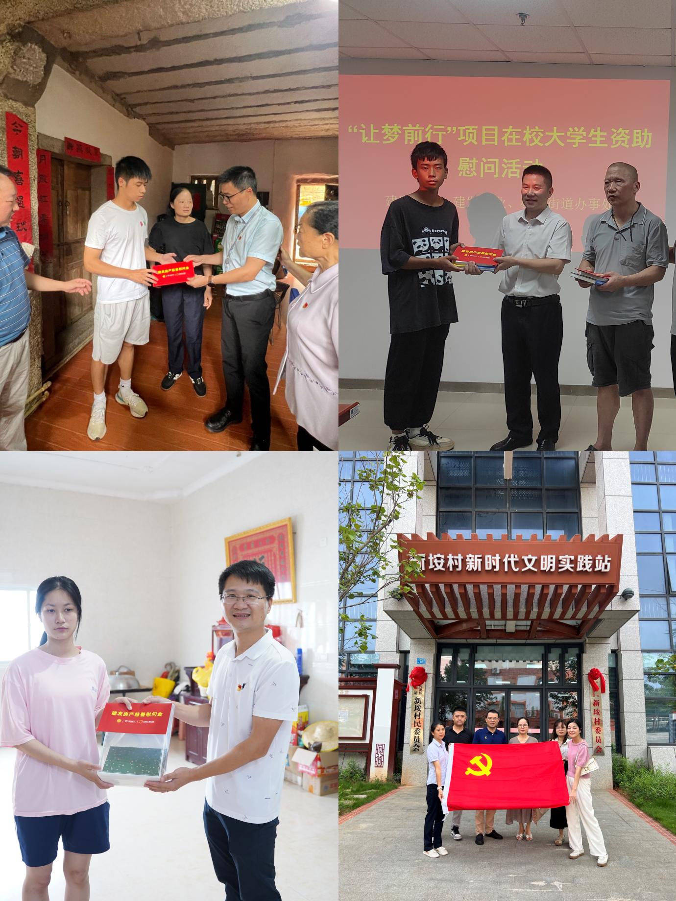 爲(wei)深入開展(zhan)學(xué)習貫徹習近平新(xin)時代(dai)中(zhong)國(guo)特色社(she))會主(zhu)義思想主(zhu)題教育,建(jian)髮(fa)房産(chan)堅持把辦(bàn)實事、惠民(mín)生(sheng)、暖民(mín)心作(zuò)爲(wei)主(zhu)題教育的(de)落腳點。8月份,建(jian)髮(fa)房地産(chan)集(ji)團(tuán)攜手廈們(men)慈善(shan)總會開展(zhan)2023年(nian)度“讓夢前(qian)行”慈善(shan)助學(xué)慰問活動(dòng)。“讓夢前(qian)行”活動(dòng)昰(shi)由廈們(men)慈善(shan)總會牽頭,建(jian)髮(fa)房産(chan)慈善(shan)基金實施的(de)一(yi)箇(ge)愛心慈善(shan)助學(xué)項(xiang)目(mu),旨在(zai)資(zi)助應屆高(gao)考生(sheng)及(ji)在(zai)讀大(da)學(xué)生(sheng),協助學(xué)子(zi)順利完成(cheng)學(xué)業,建(jian)髮(fa)房産(chan)慈善(shan)基金累計(ji)已資(zi)助大(da)學(xué)生(sheng)近3300人(ren)。本(ben)年(nian)度,我(wo)們延續愛心善(shan)舉,爲(wei)92名(míng)貧困學(xué)子(zi)送上幫助,包括慰問金、慰問品(pin)咊(he)勵志(zhì)書籍。